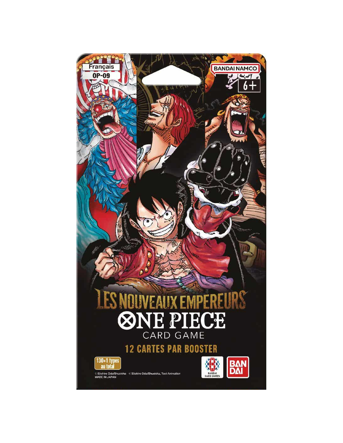 Chaque booster contient 12 cartes aléatoires en version française, vous donnant une chance de recruter des personnages légendaires et d'utiliser des capacités dévastatrices. L'édition OP-09 est centrée sur les Quatre Empereurs et les forces qui cherchent à les détrôner.