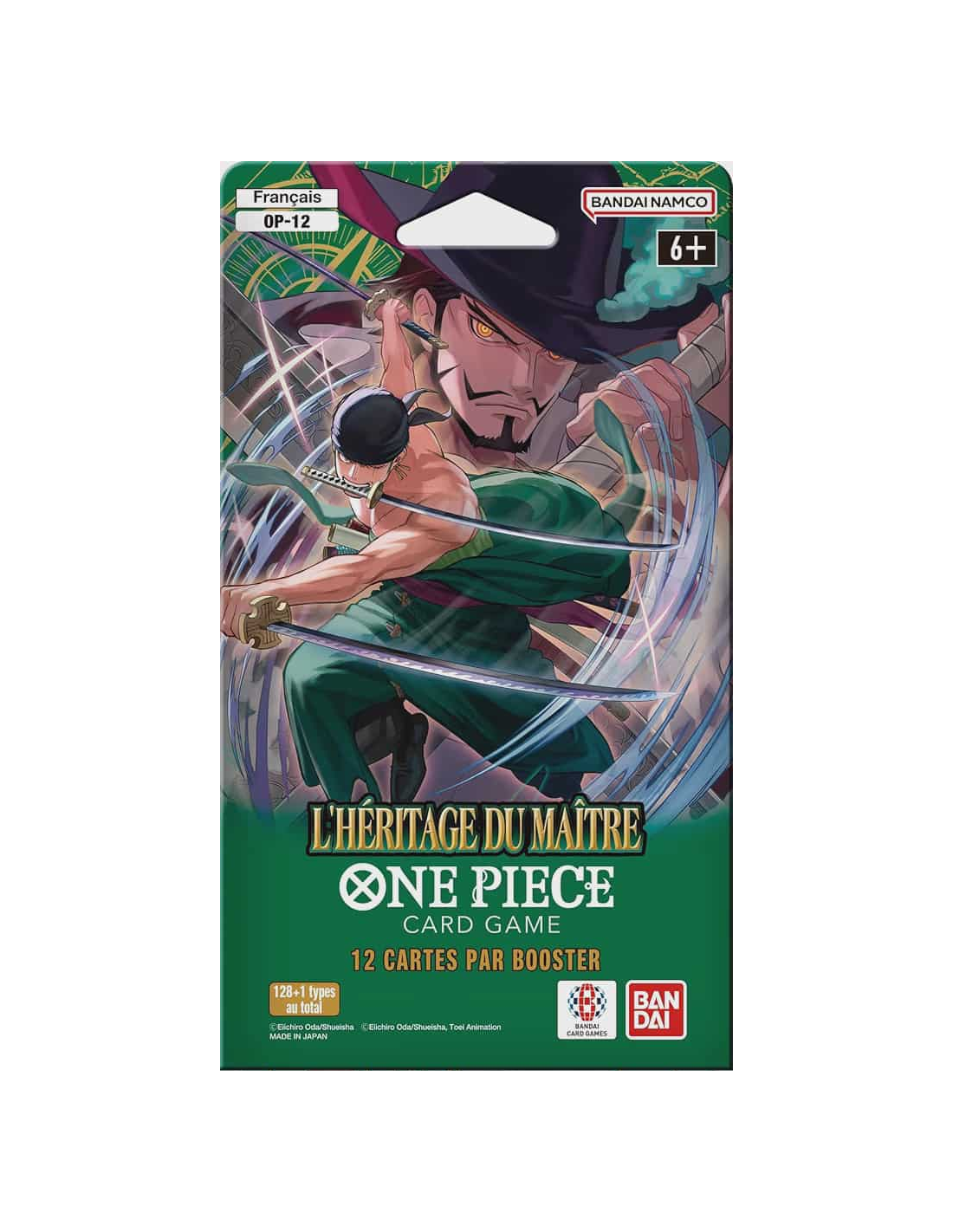L'édition OP-12 : L'Héritage du Maître rend hommage aux grands épéistes et aux figures de mentor de l'univers de One Piece. Ce booster est centré sur l'arc narratif de Wano Kuni et met en lumière des personnages comme Zoro, Mihawk et d'autres maîtres du combat.