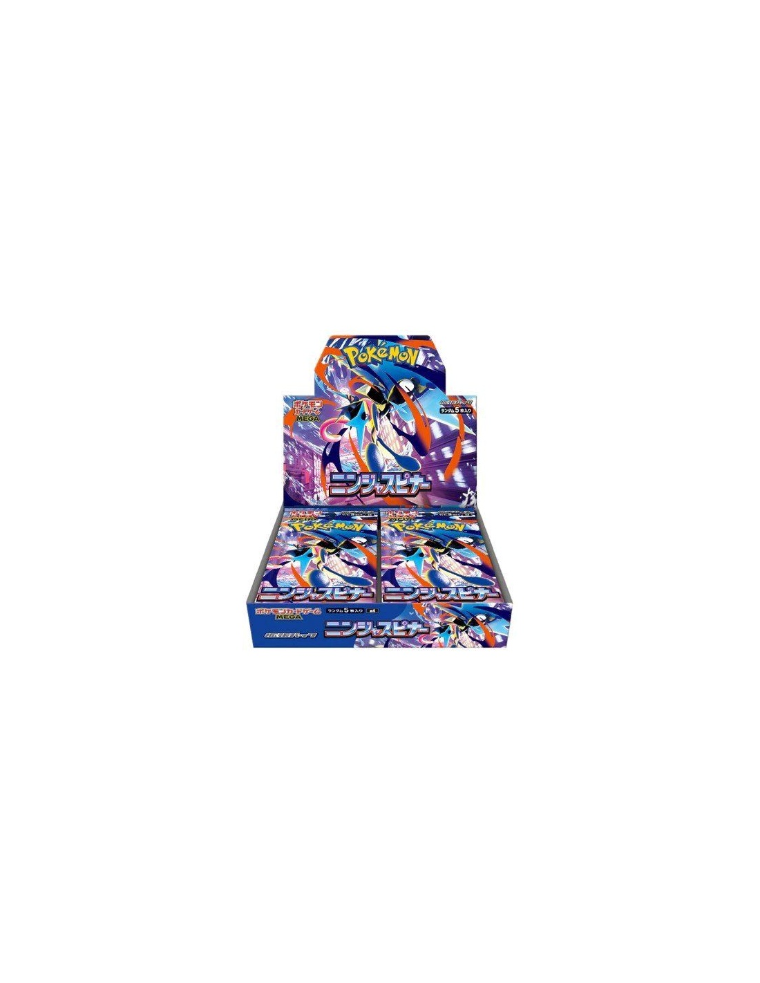Display Pokémon TCG MEGA Ninja Spinner M4 japonais contenant 30 boosters de 5 cartes. Une extension japonaise mettant en avant Méga-Amphinobi ex (Mega Greninja ex), idéale pour les collectionneurs et joueurs Pokémon TCG.